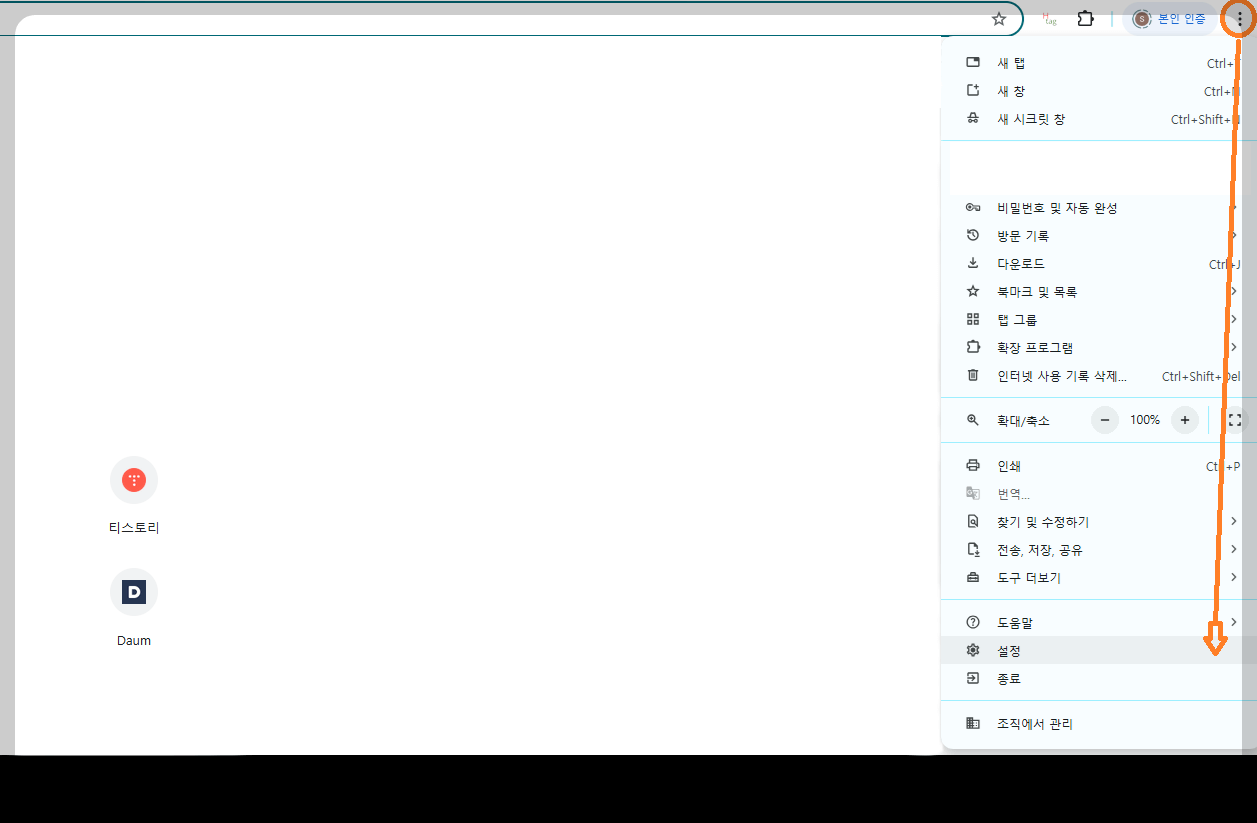 우측 상단의 점 세 개(⋮)를 클릭하여 설정으로 들어가세요. 설정 페이지에서는 다양한 옵션을 조정할 수 있습니다.