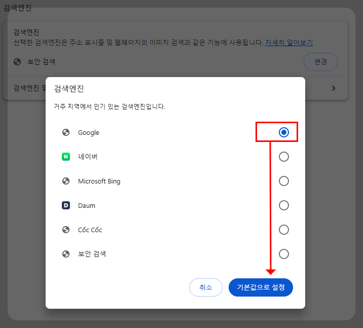 🔎 3. Google로 기본값 설정하기